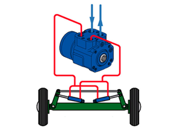 When the steering wheel is turned, the steering unit meters an oil volume proportional to the rate of rotation of the steering wheel.This volume of oil is directed to the appropriate side of the steering cylinder, while simultaneously the displaced oil is directed to tank.
